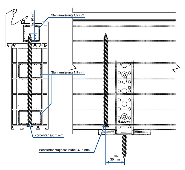 2x Fenstermontageschraube Ø7,5 mm