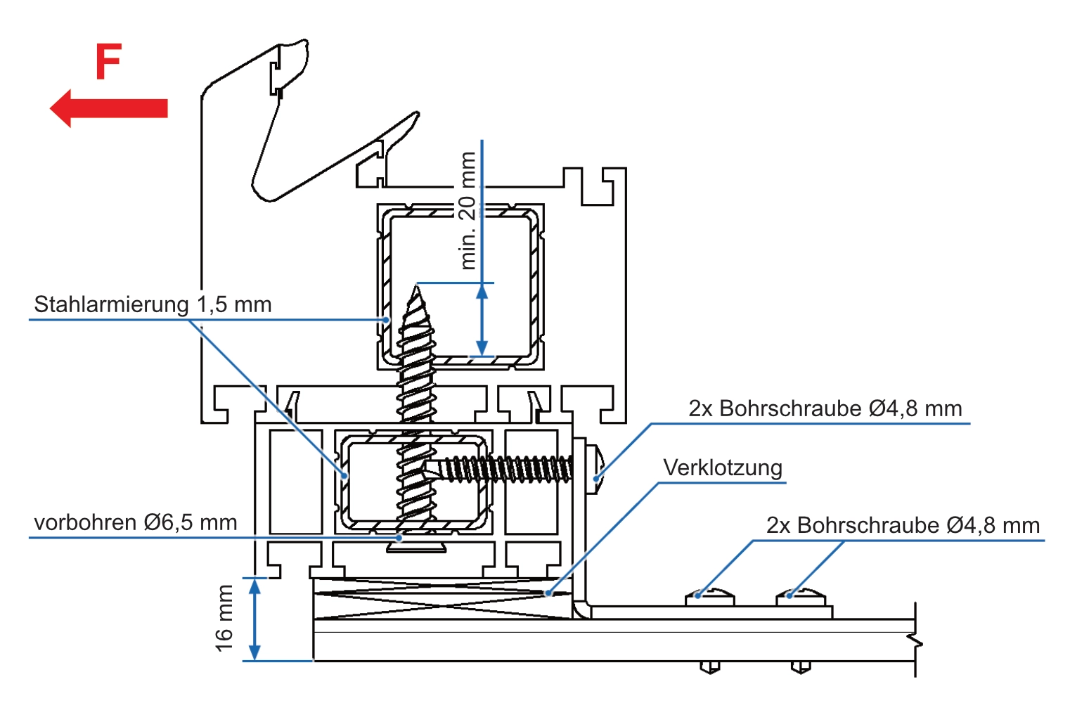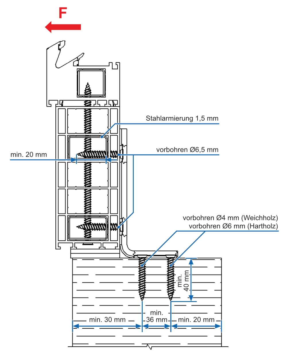 4.6. VBW bei Holzlaibung - Anschlussprofil - Kunststoff mit Stahlarmierung